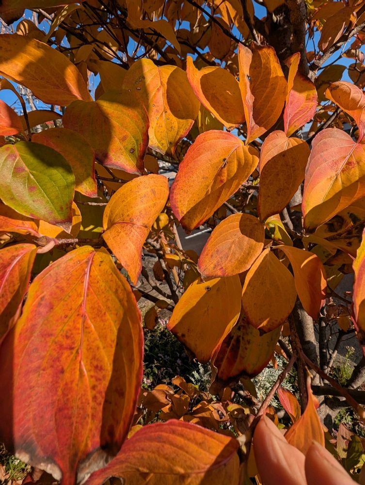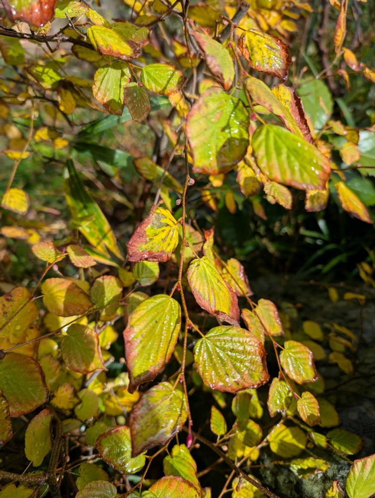 今日は咲き始めた冬花と紅葉して散り始める木の葉です