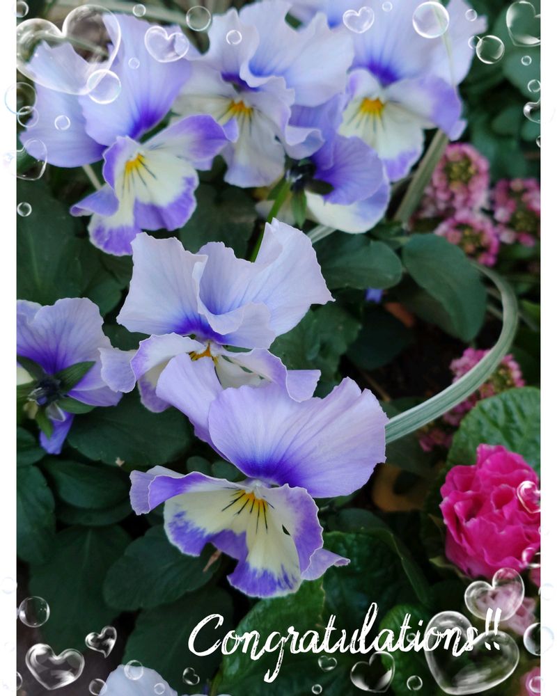 フリフリのブルーのビオラでお祝いさせて下さい😆