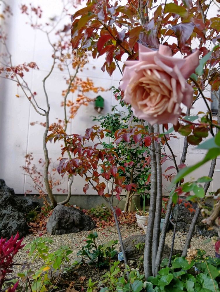 年末にやっと咲いた、秋薔薇?冬薔薇一輪✨
