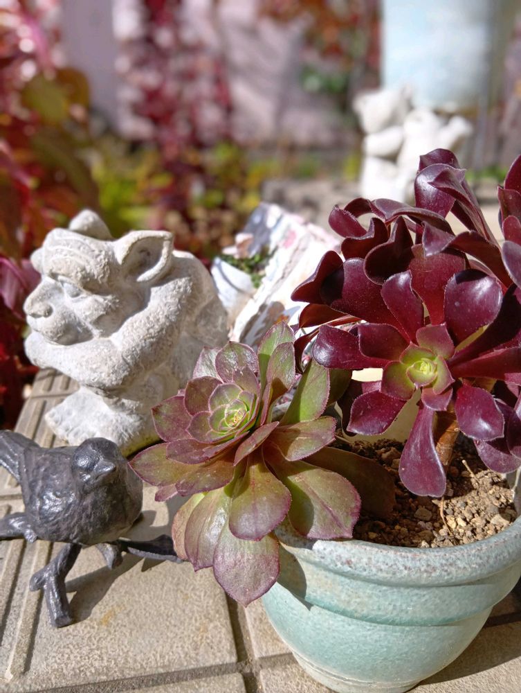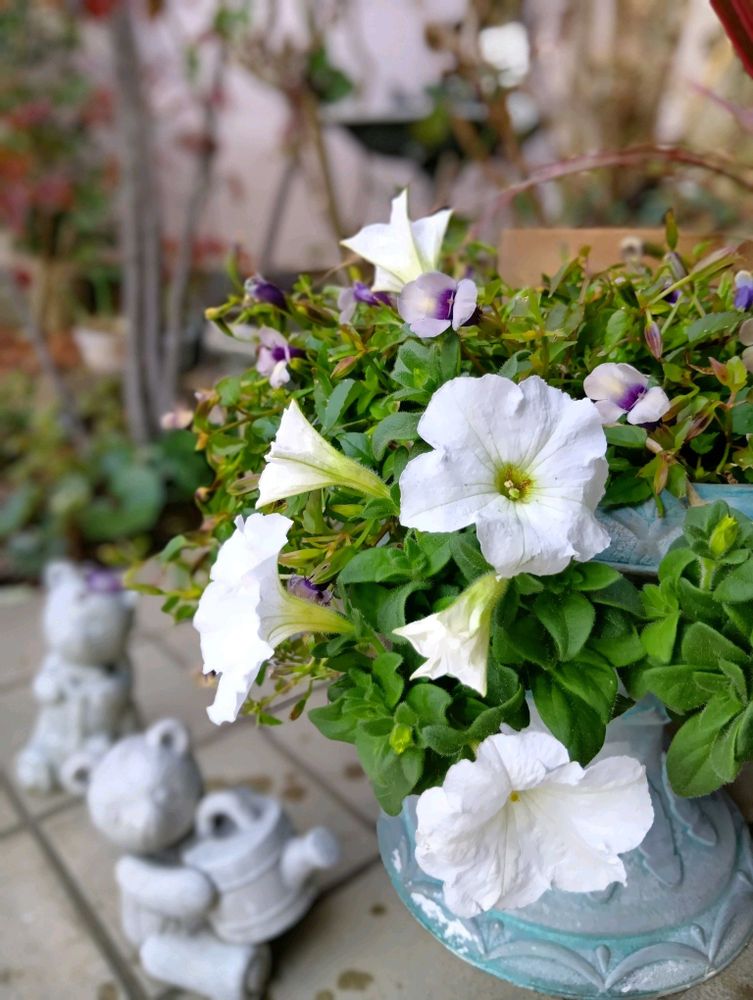 トレニアさんと身を寄せ合って、昼間だけ外で日向ぼっこ☀