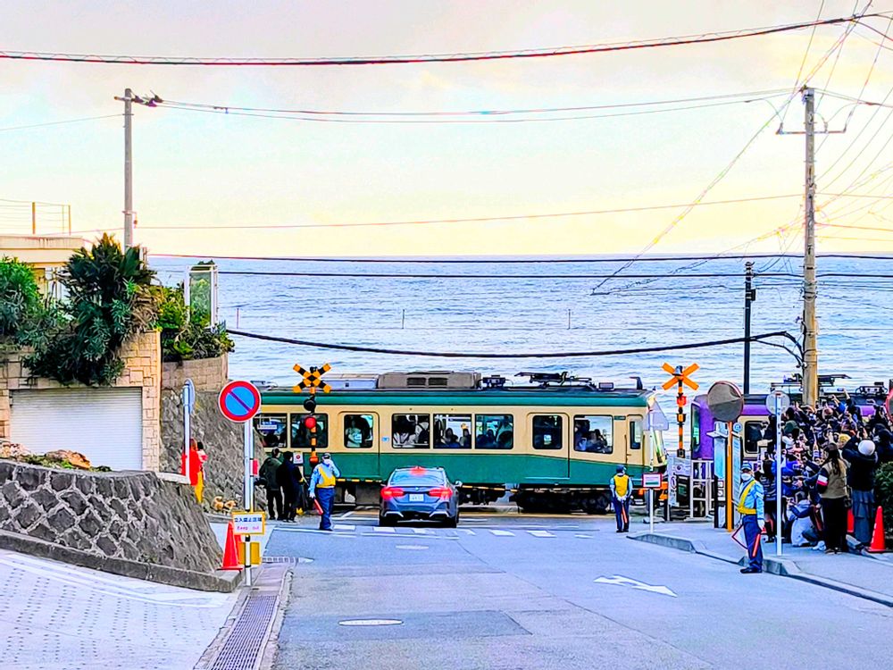 鎌倉高校前の踏み切り、凄い人ですよね〜