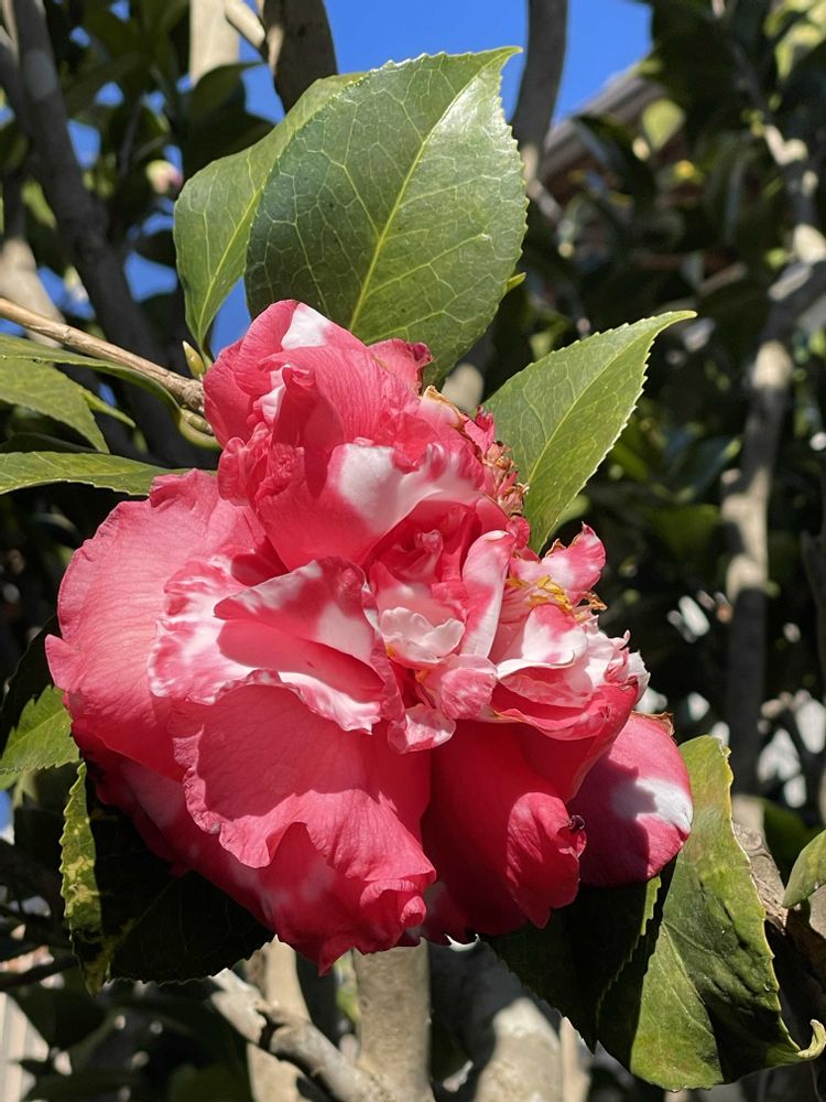 斑入り椿🟰常陸牛に笑った🤣🤣