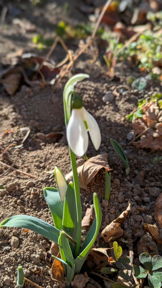 チビは風邪ひきなのに庭で遊びたがり、出るとスノードロップが咲いていました🤍