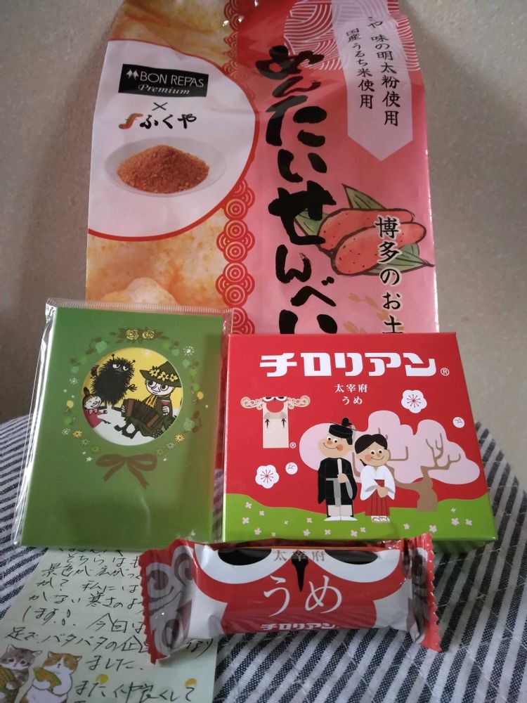 スナフキンとムーミン谷の仲間達の付箋・めんたいせんべい・チロリアン美味しいお菓子🥰🙏