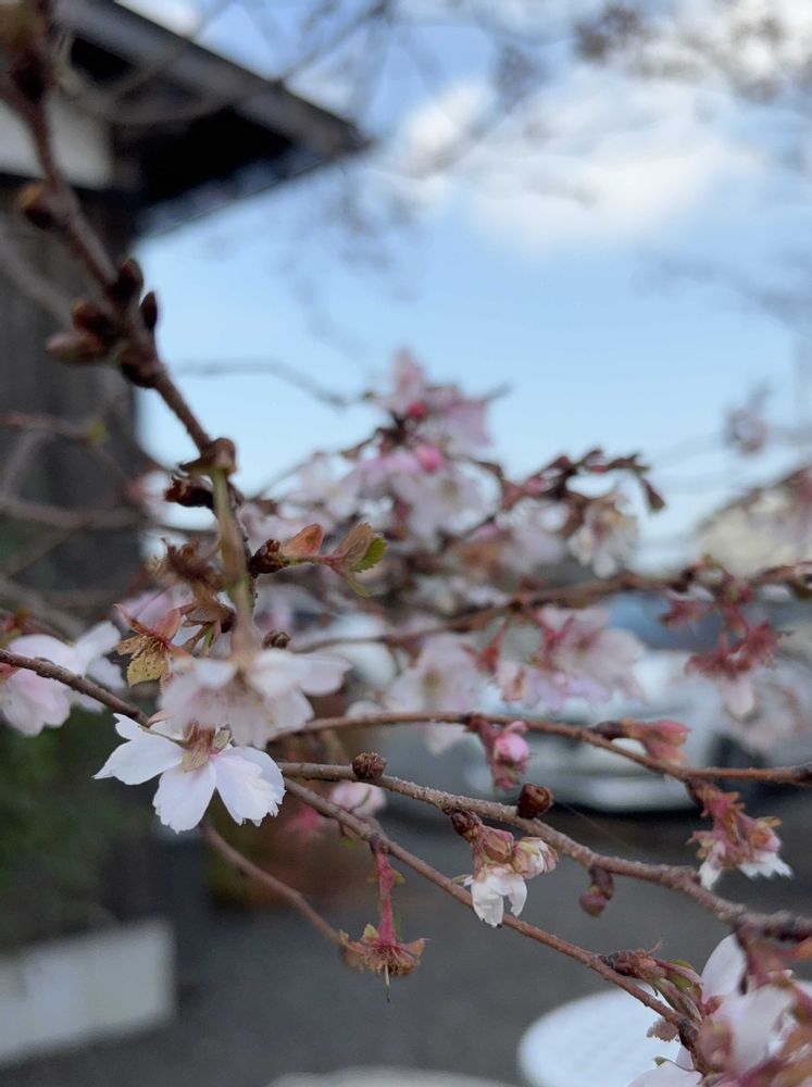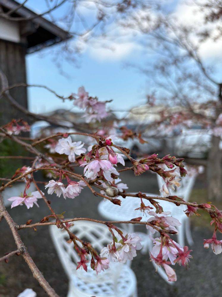 ①②③店の裏手には桜がチラホラ咲いていたので、店主さんに桜の名前を尋ねたところ、「僕が植えたんですが、どうしても名前が思い出せんのです😅 賑やかに満開っていう咲き方はしないけど、一年中咲くんですよ。」って。笑顔のいい店主さん、気に入ったよ〜☺️👍🎶