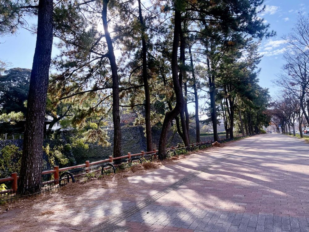 木漏れ日の散歩道。背の高い木々を感じながら、朗らかな気分で歩けました。