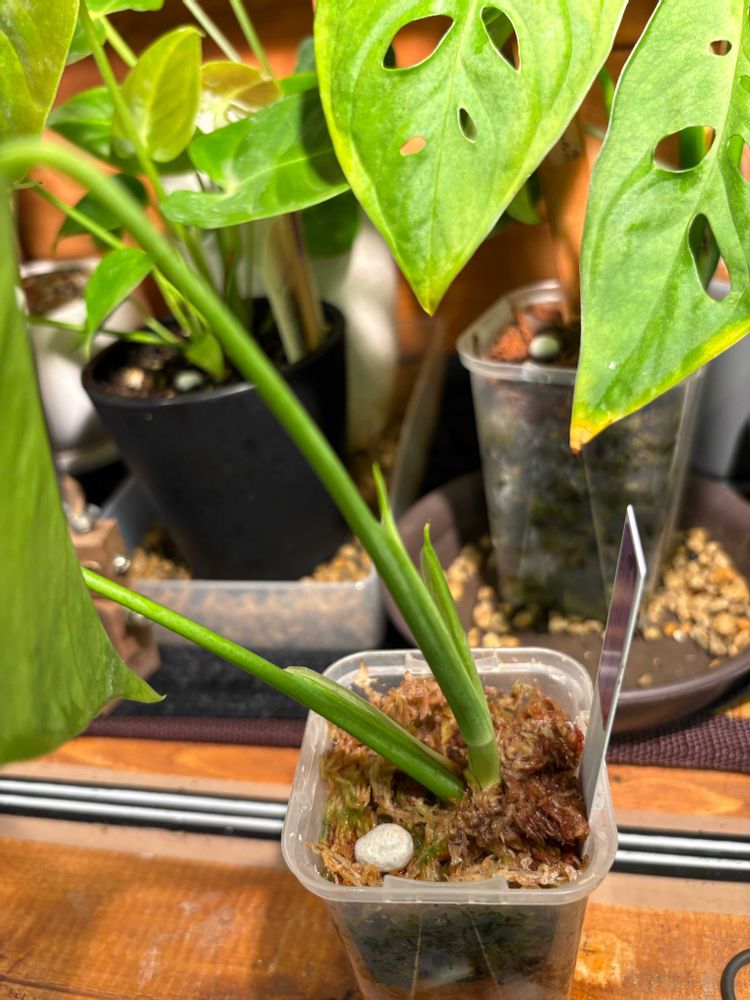 根が張ってきたなーって手に取って眺めていたら新葉がめくれてきてました