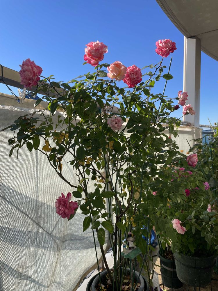 強風のベランダで、バラは負けない‼️嬉しくってバラ鉢だらけになっちゃいました💕品種不明のバラばかりなので鉢に名前をつけてます✌️ 2020年4月からバラ生活が始まり、GSは5月末から参加しました。みなさんからいろんな植物の話が見聞き&おしゃべりできてとっても楽しいです。ありがとぉです💕どうぞよろしくです。