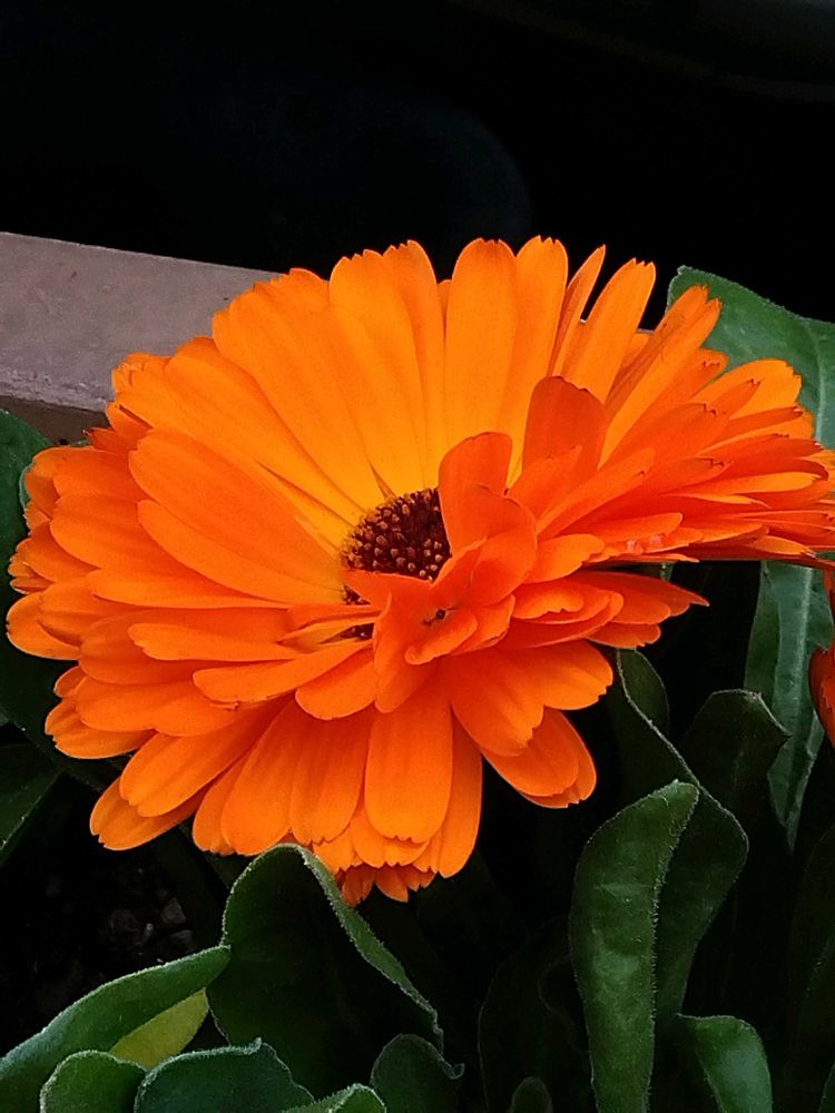 オレンジ色のキンセンカに元気を貰いながら冬知らず