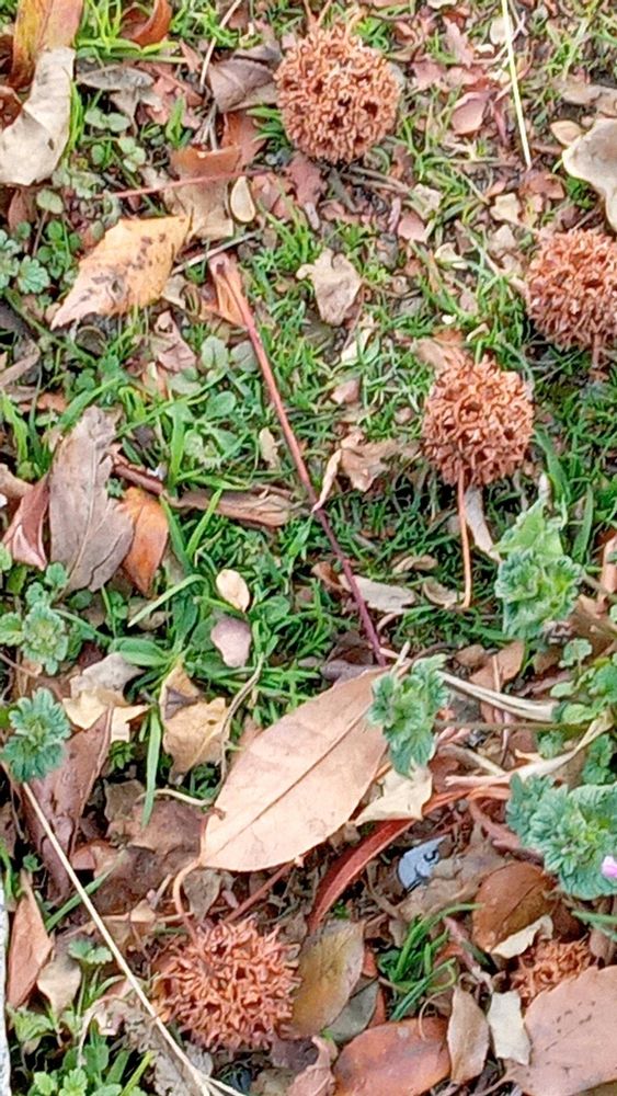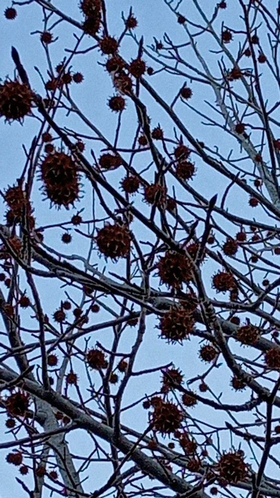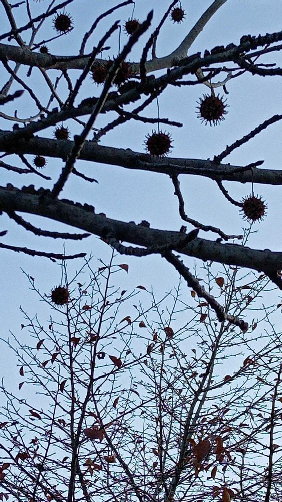 春に早咲きの桜🌸を見に行った公園が、今日通院の病院から程遠くないところにある。そうだ、確かモミジバフウ🍁の木があった、と思い出した。あのトゲトゲの実を拾って帰り、リースの飾りにしよう。あまり拾う人もいないらしく、あるあるたくさん拾えたよ\(^o^)/