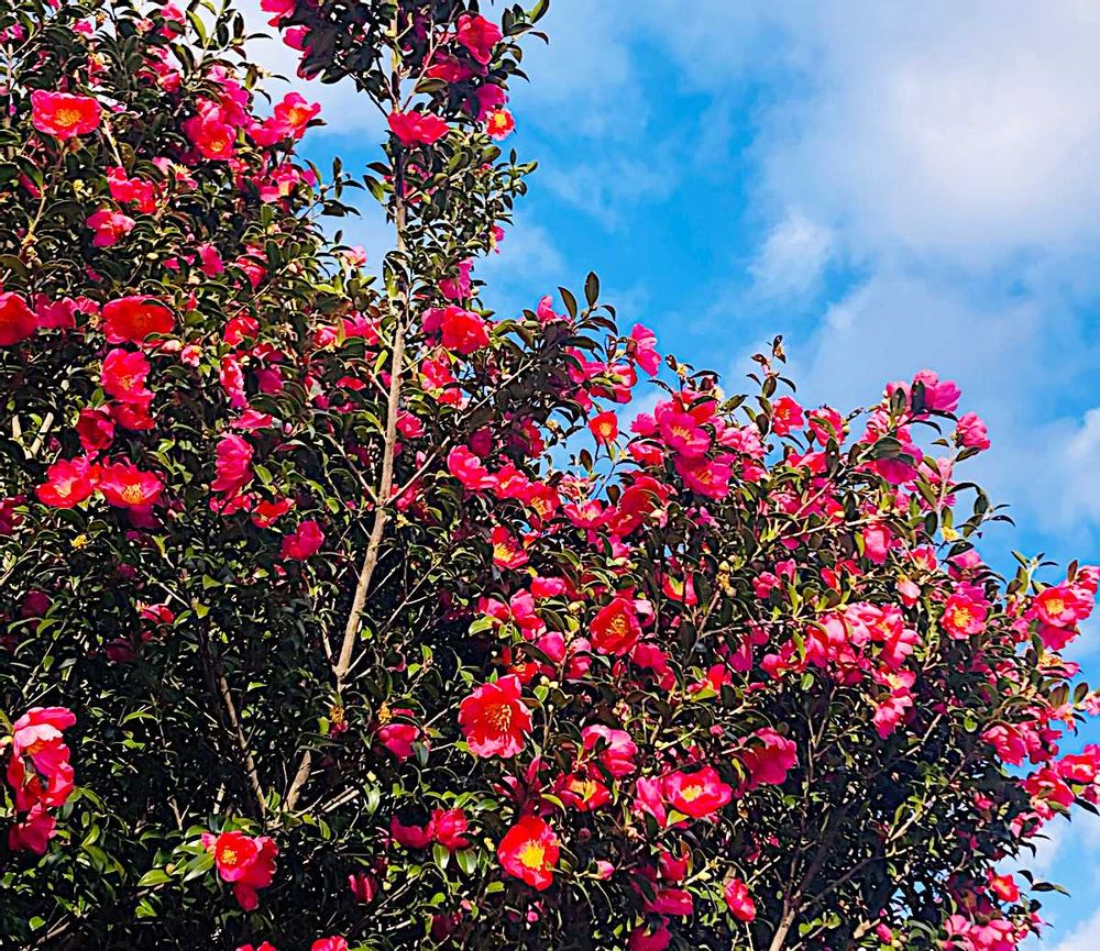天に向かって美しい花を咲かせる立寒椿、花の少ない時期に美しい花を咲かせ続けてくれる嬉しい花ですね。人の世界でも周囲を照らしてくださる方々に素晴らしいと思います。