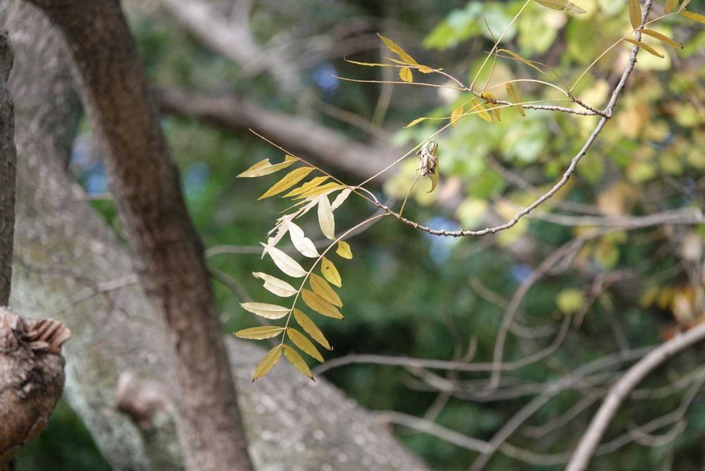 枝が直角に付き、小葉が羽根のように綺麗に揃う、と書いてありますが、この樹ではそんなふうに見え無くて、ただ大木という認識です。