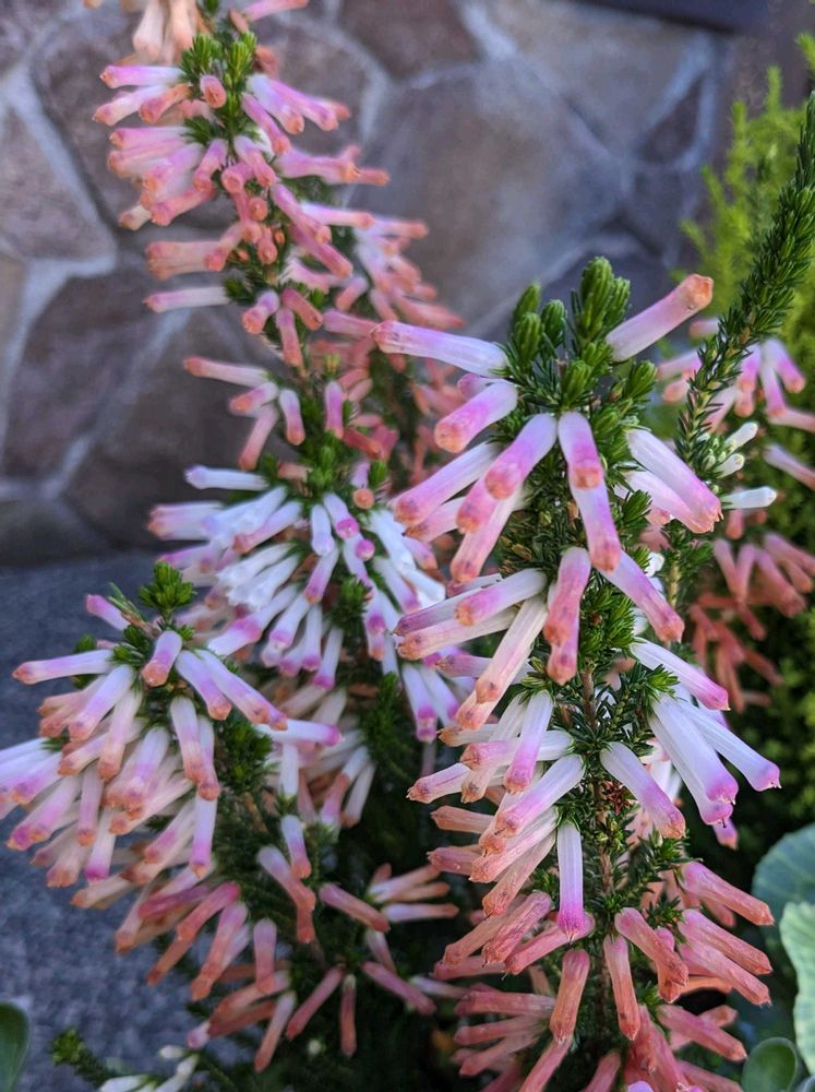 ②花茎先端から総状花序を伸ばし薄紅色で3cm長さの筒状花が列をなして咲いてます🌿🩷💜🩷🌿