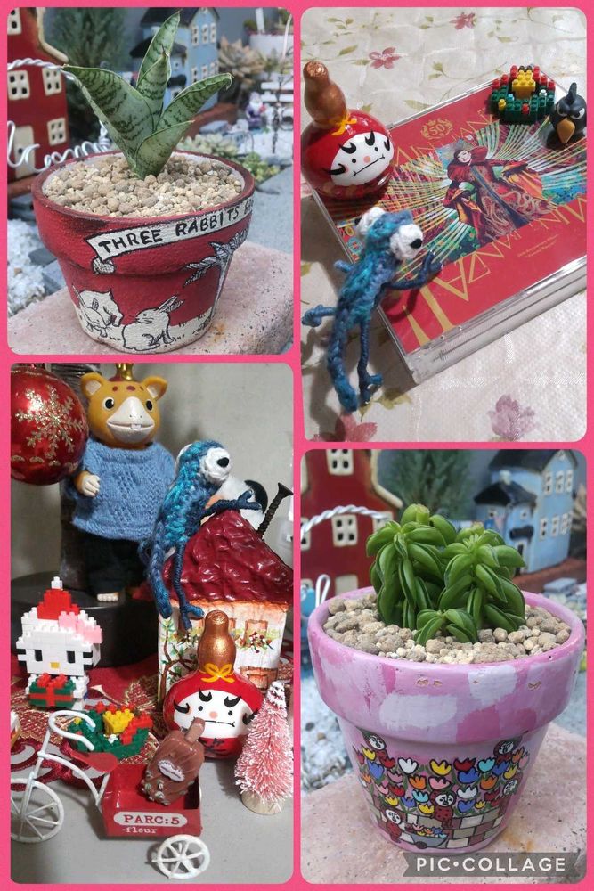 1枚目は、義姉から送られてきたシクラメンとお散歩ちゃんキーホルダーのあおいちゃん💕