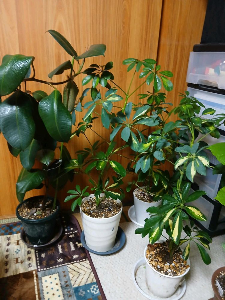 カポック。ゴムの木。ウンベラータです。よく伸びて育ってます