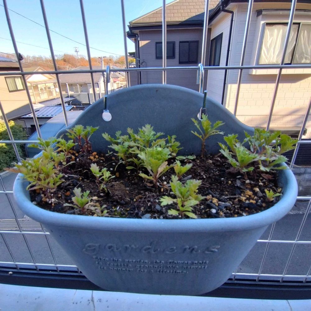 ⑤今春ビオラと寄せ植えしていたノースポールのこぼれ種から育てています