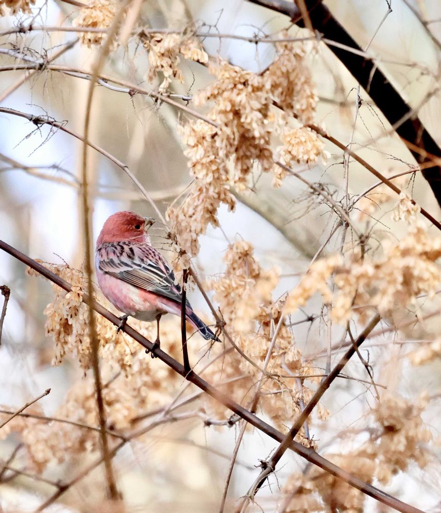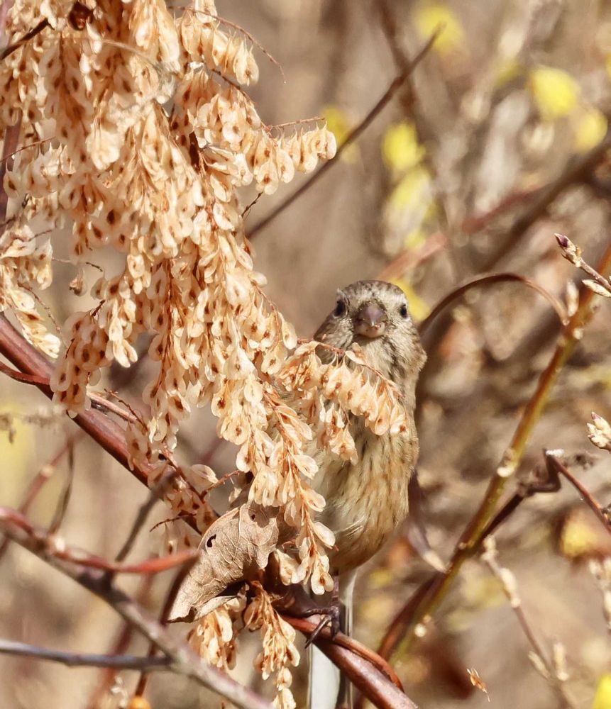 ベニマシコちゃんのメスは、顔がホワッとしてて、とても愛らしいですね〜😃😊