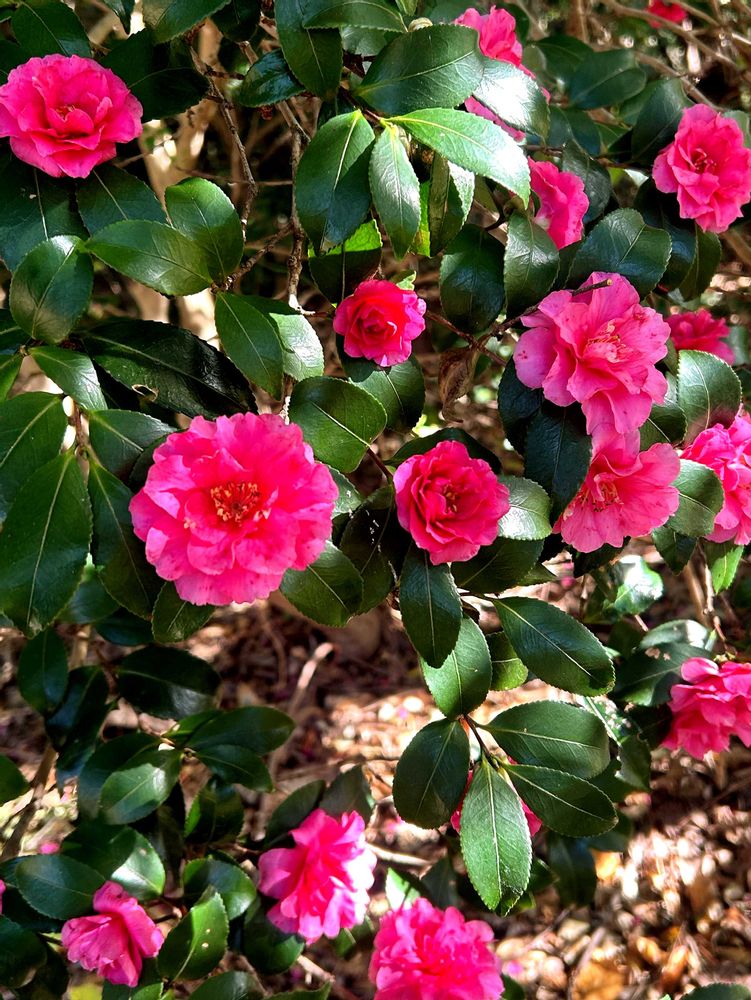 冬の間中紅色の八重の花を咲かせます。手入れをしなくても美しい姿になりやすく、庭や公園に沢山植えられます(表記より)