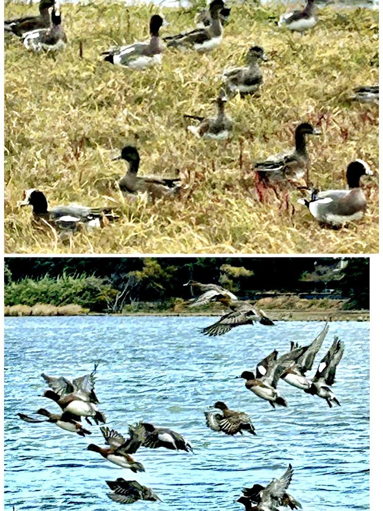 ヒドリガモさんお食事に夢中の時は割と気づかなくて、至近距離から撮れるけど、1羽が飛ぶと連鎖するんですよね🎶