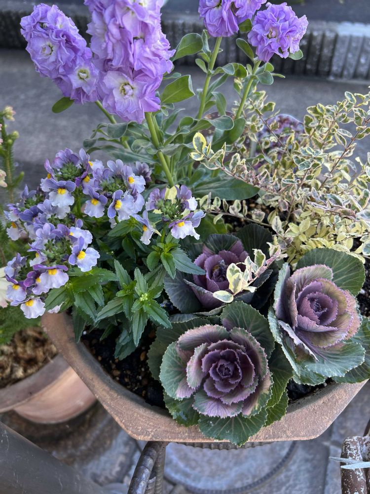 今の時期は葉牡丹は寄せ植えには欠かせないですよね