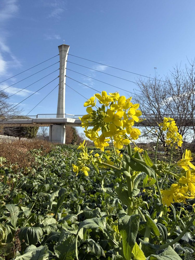 菜の花が咲き始め、うぬき橋とのツーショットが美しい光景でした。🤗