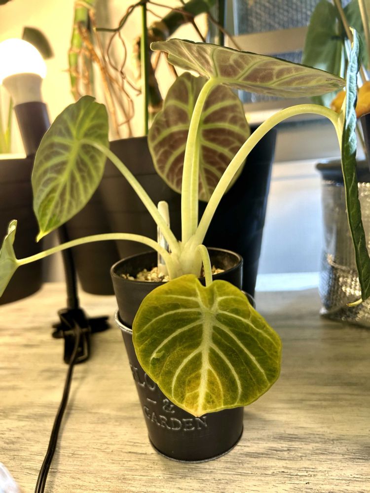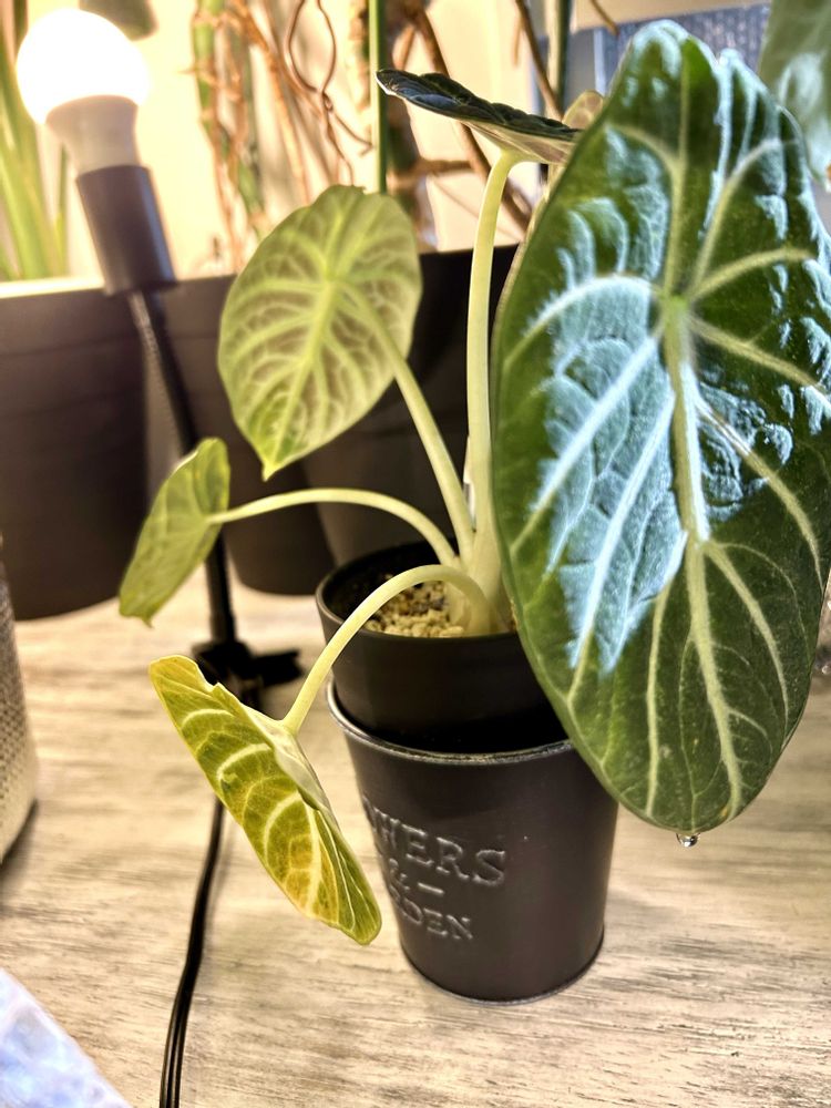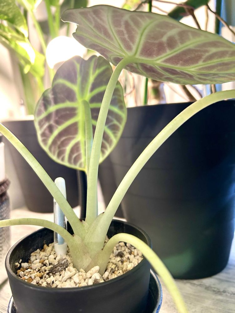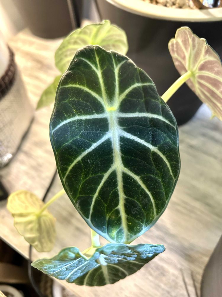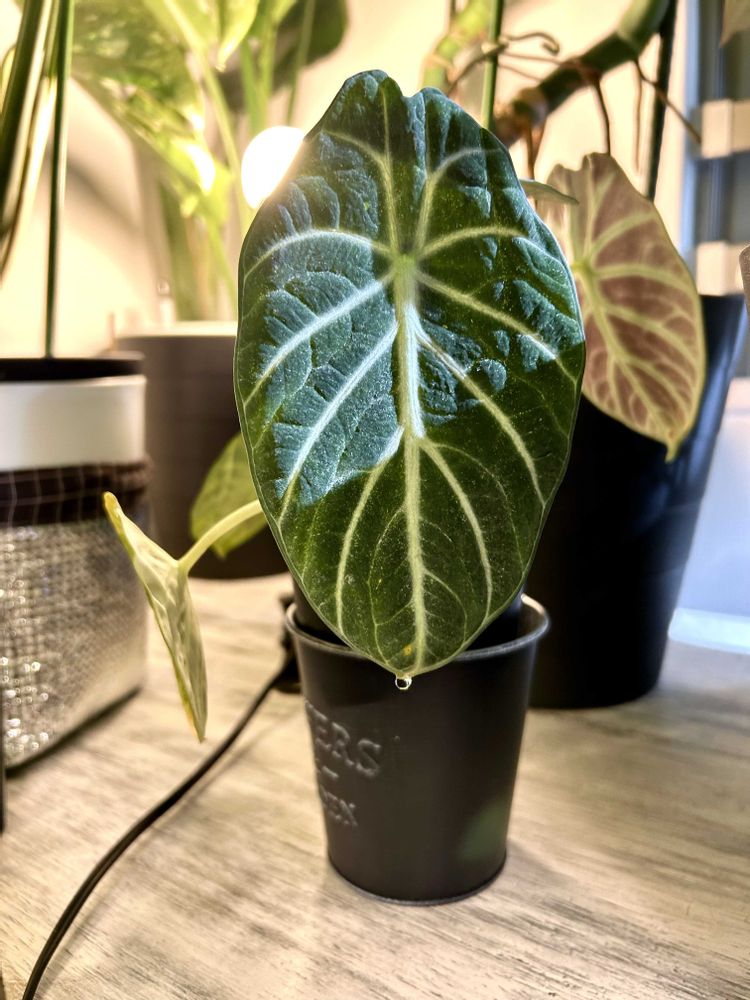 お気に入り😊アロカシアニンジャ🥷寒さに弱いと聞いていたのでビビっていたが今のところ大丈夫👌水もよく飲む💦葉裏も美しいんですよねー🤩葉っぱも硬い☘️