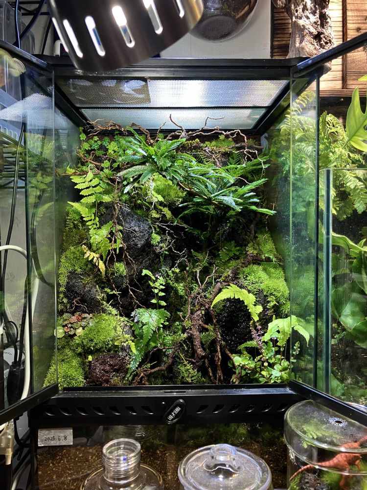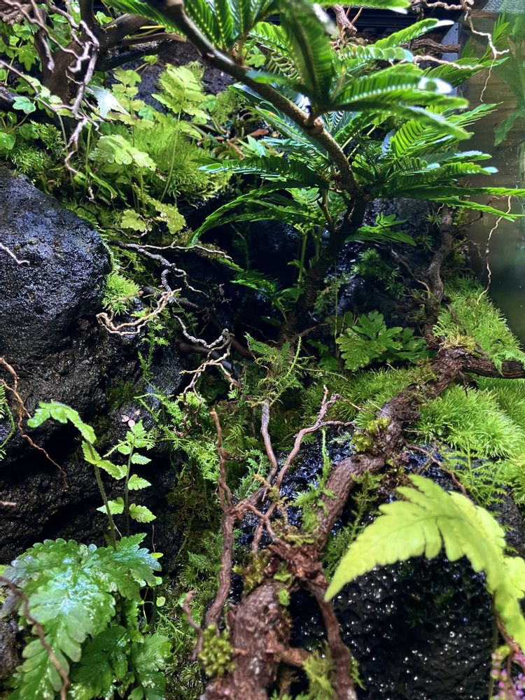 最初に入れた流木と苔やシダ等 植物達も調子良く育っているのでそのままにして その後少しづつ根流木などを付け加え 良い感じになってま👍