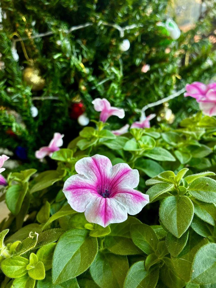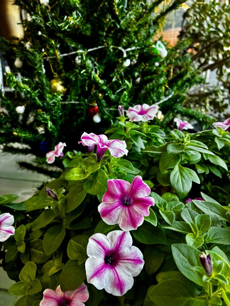 クリスマスツリー🎄とペチュニアのコラボなんて、そうそうないよね💞