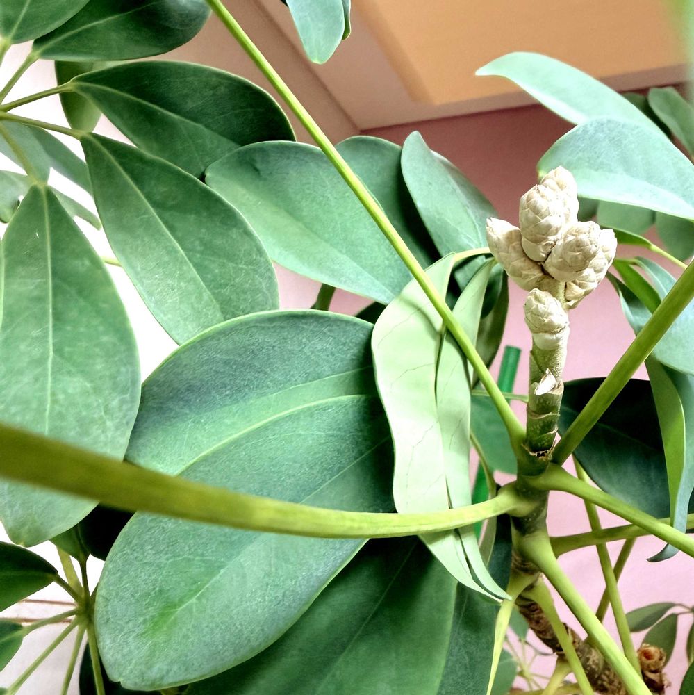カポックにお花が咲くとは…見るのも聞いたのも初めてです~🌱