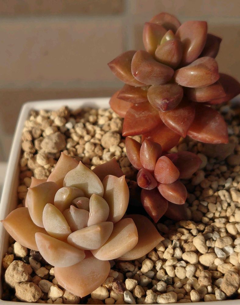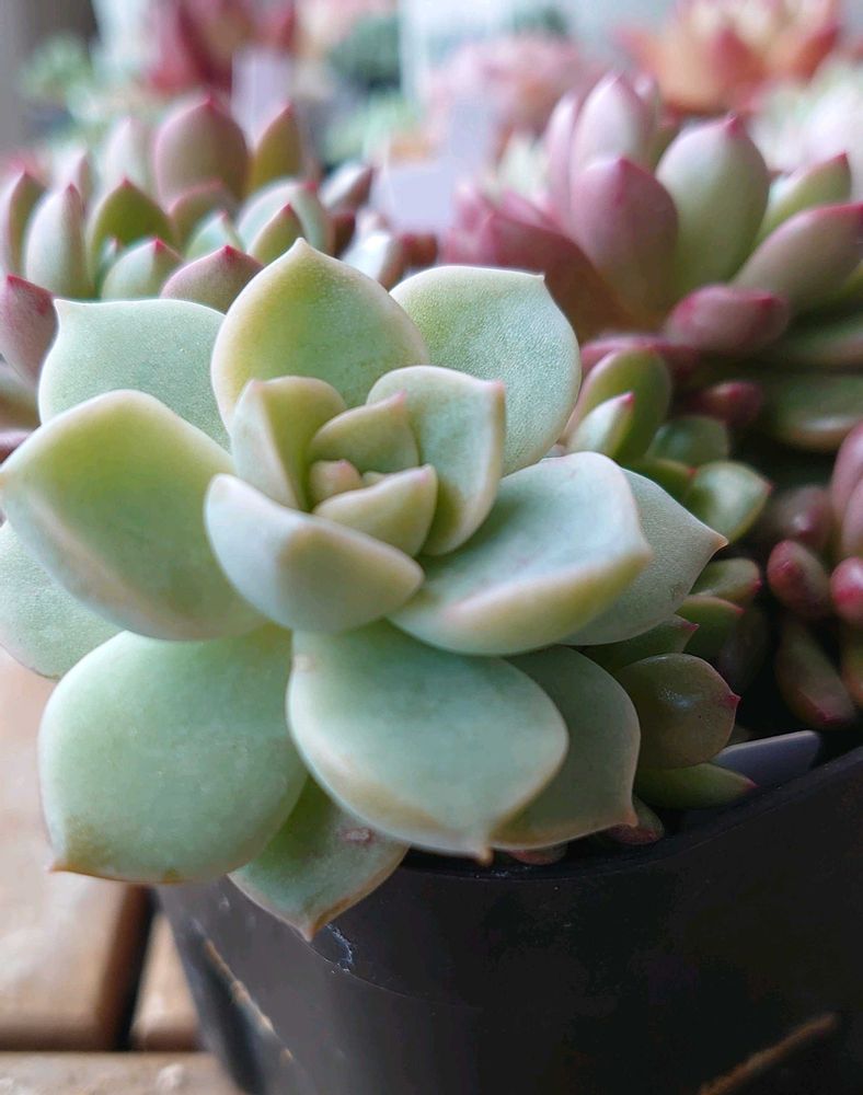 葉挿しでよく増えるので白牡丹さんがあちこちにいますが、この子だけピンク色😍🩷