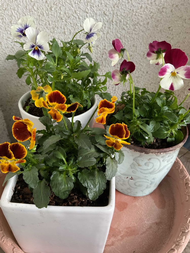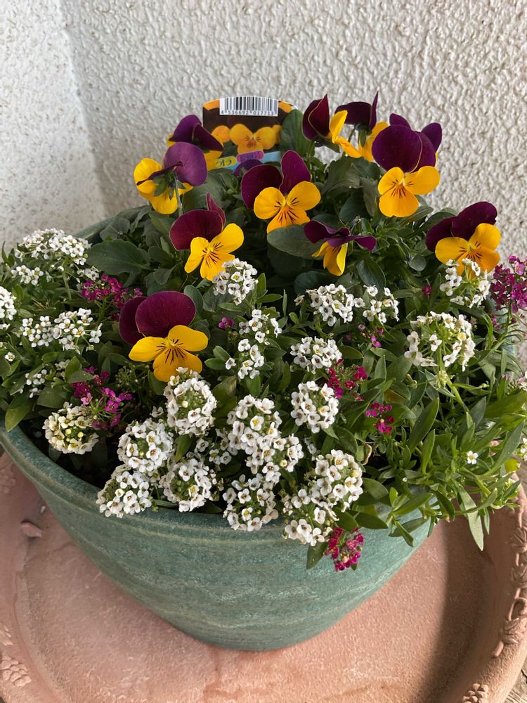 ビオラ ピエナ プリンと、ミックス アリッサムとの寄せ植え、元気になって来ました〜♪