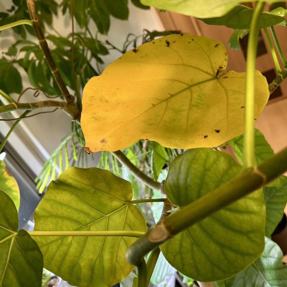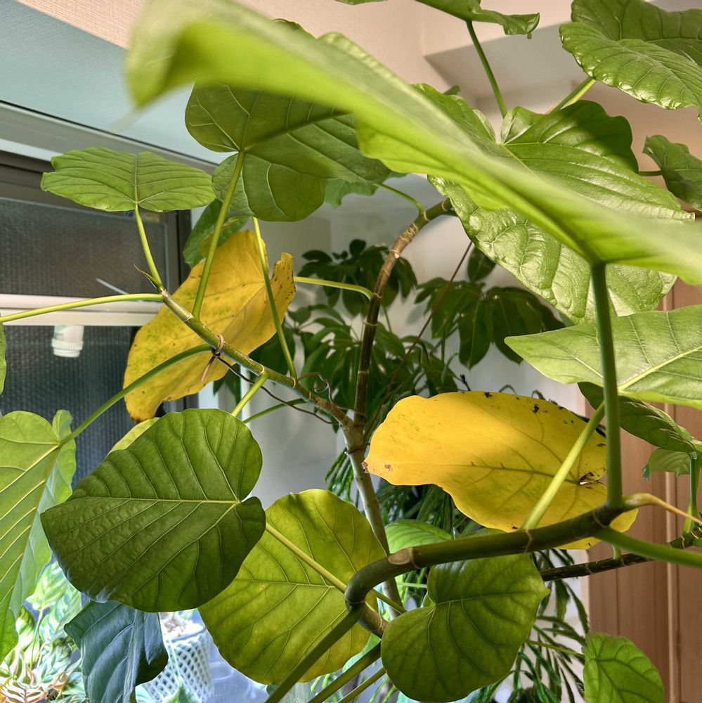 お気に入り😊ウンベラータ😊寒さで下葉が黄色く新陳代謝ですねー😊紅葉みたい🍁🍁🍁
