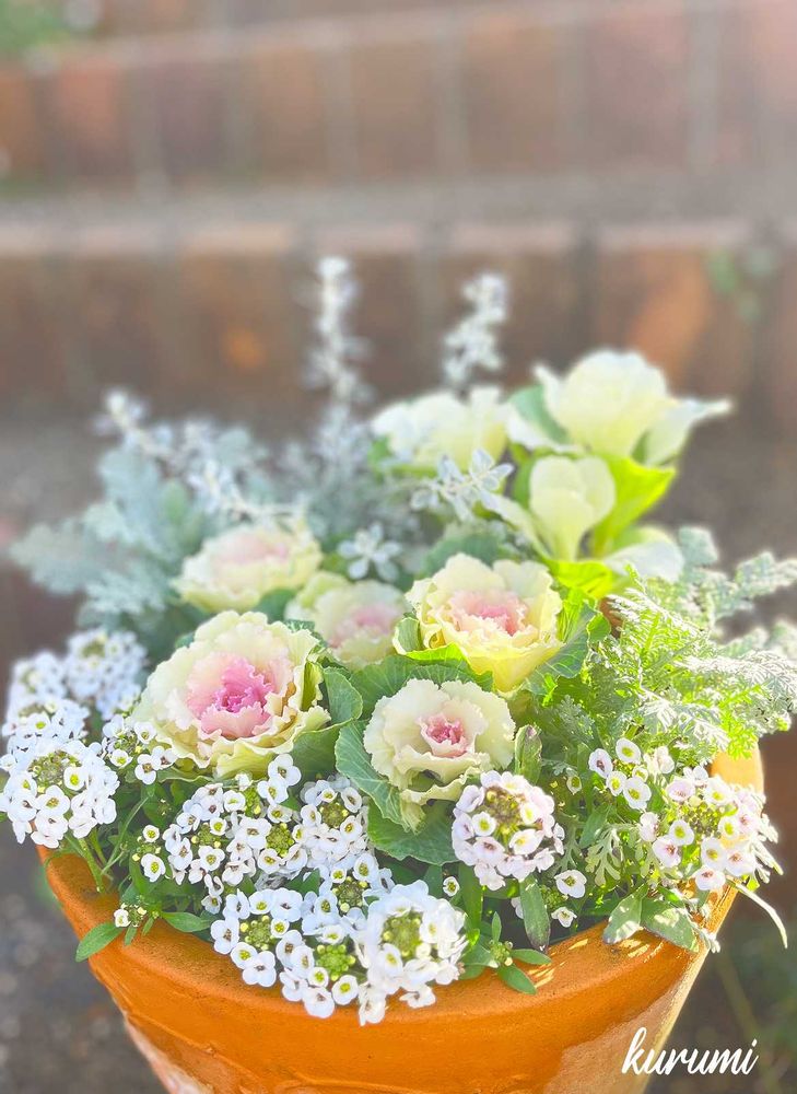 くるみさんの玄関アプローチ,アリッサム,葉牡丹の投稿画像
