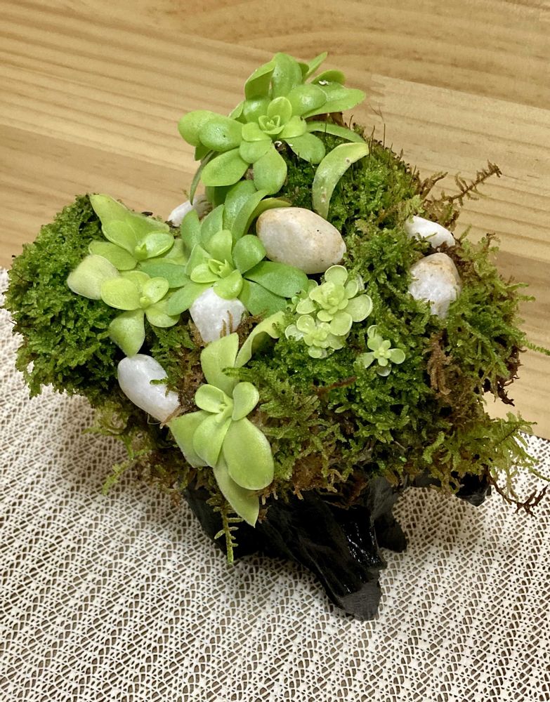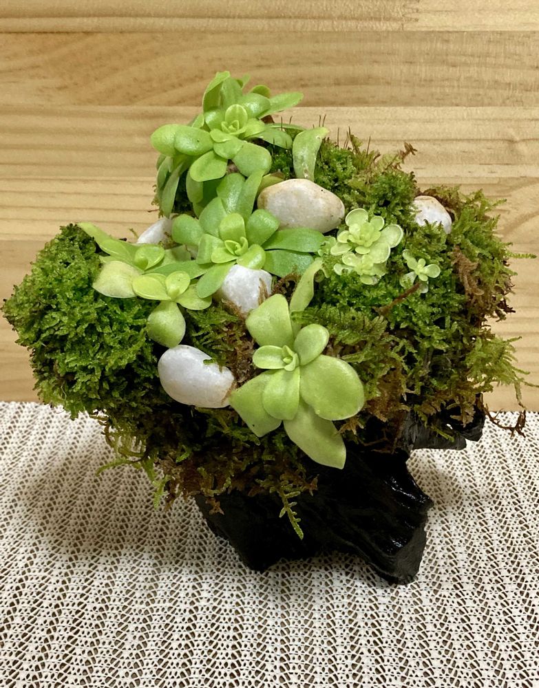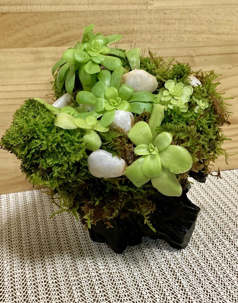 普段は、この流木を水盤の中に入れ、水を溜めて管理してます。