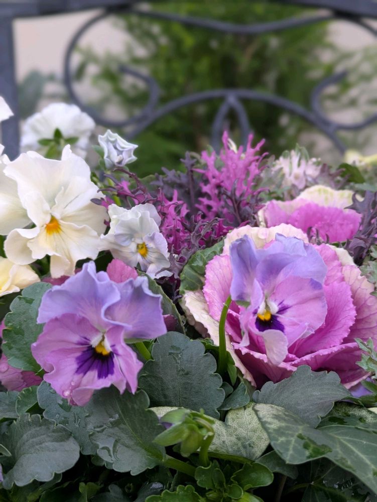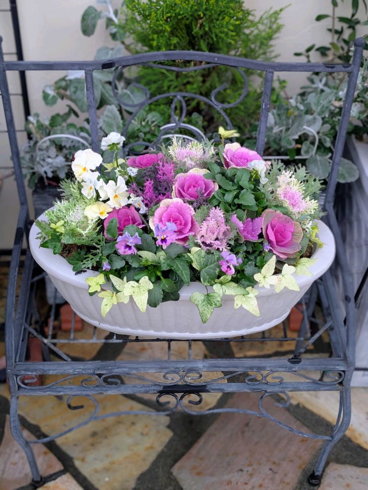 パンジーが満開になりましたらもっと素敵な葉牡丹の寄せ植えが完成になるかな…