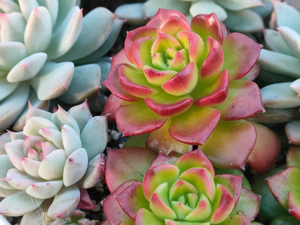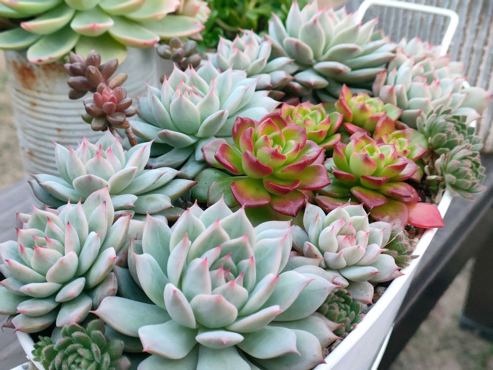 さんこんにちは♪夏はやっぱり目立たない子だけど、この季節になると青白い葉にピンクの爪が可愛いですね🩷数年前の100均の子です🥰