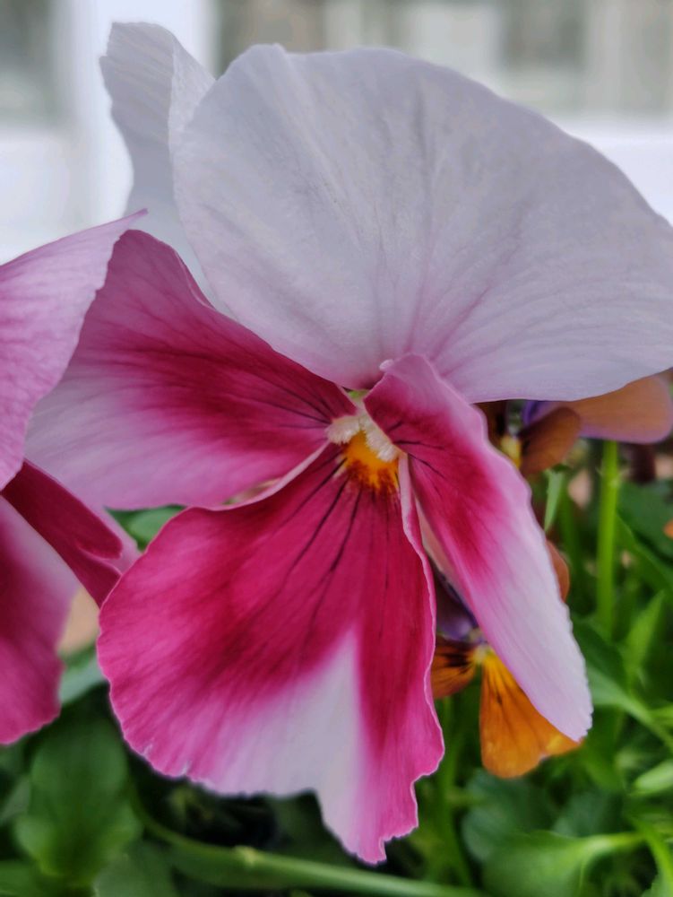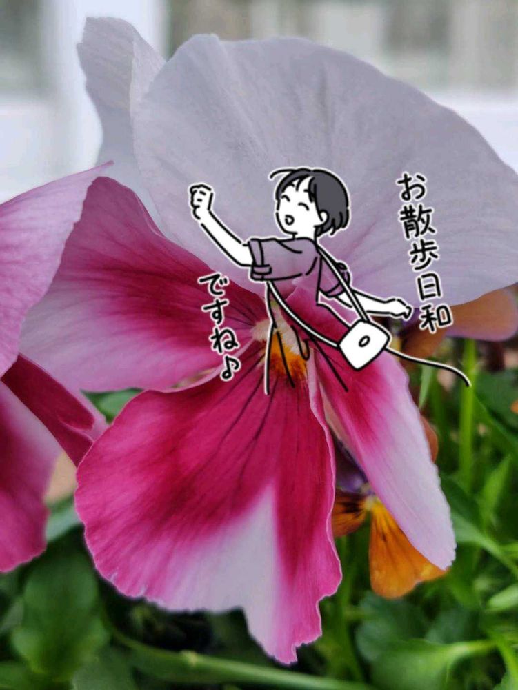 可愛い🩷のパンジーにスタンプをコラボしてみました😍