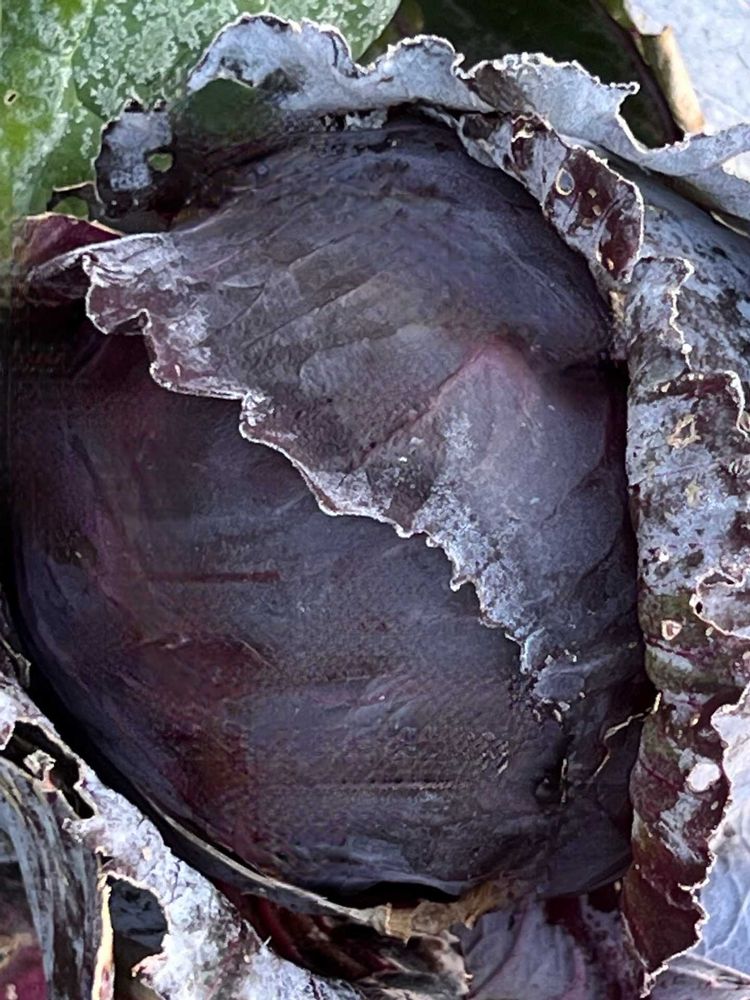 庭の鉢植えのブロッコリーや、畑の紫キャベツ
