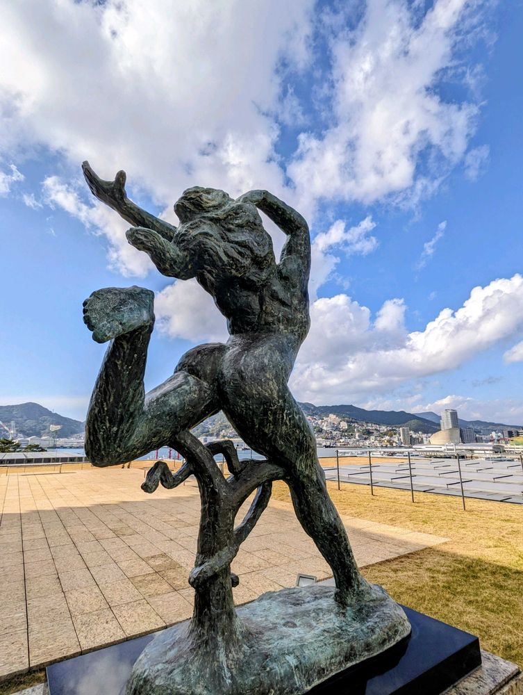 ②その向かい側、出島町、長崎県美術館の屋上庭園より、海方向を見る