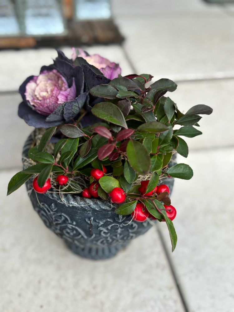 12月も段々暮れへと!お正月の準備のお花❓葉牡丹とチェッカーベリーの小さな寄せ植え作ってみました❣️