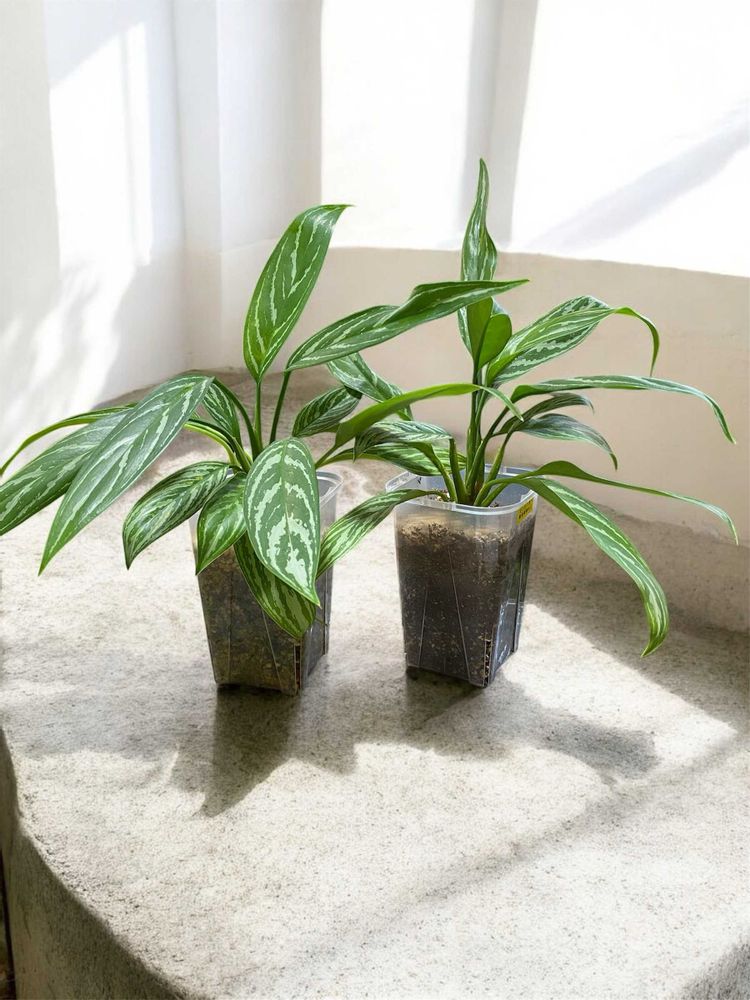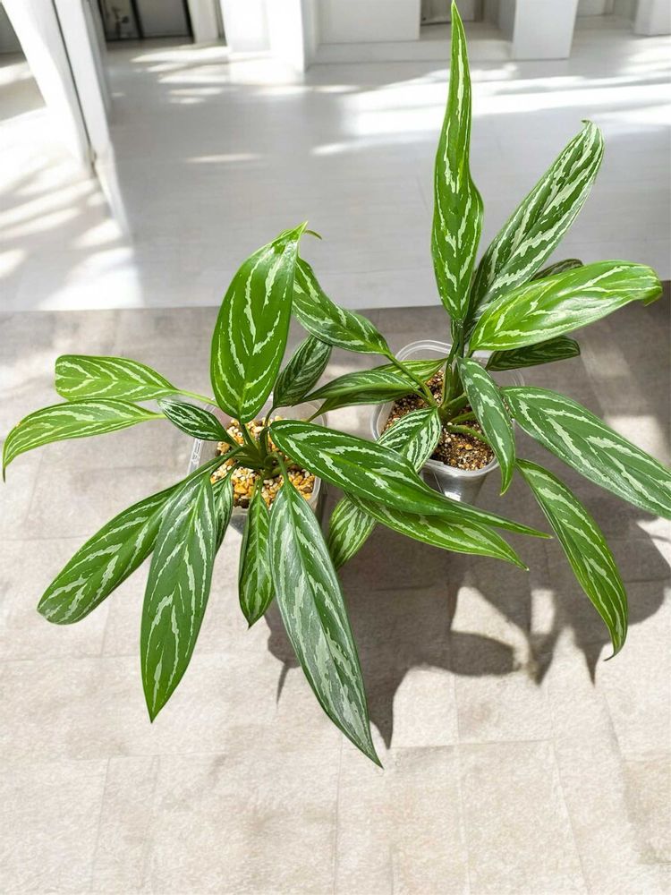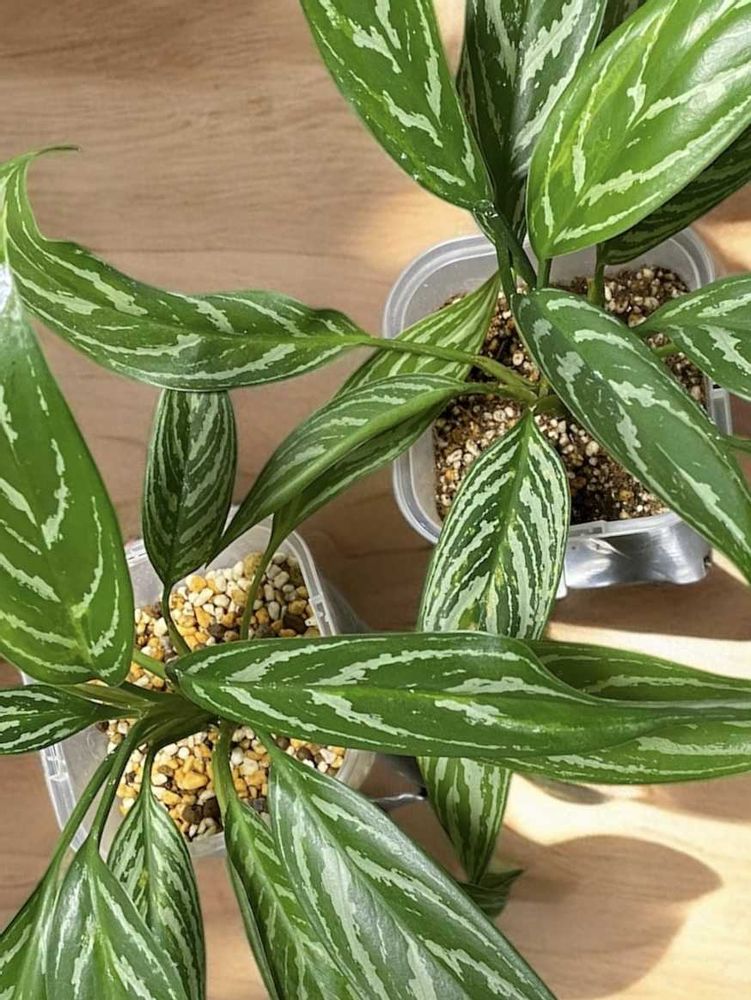 矢羽根模様がとても綺麗なアグラオネマを2種類の用土に分けて同じ環境で育てていました☀️💦🌬️