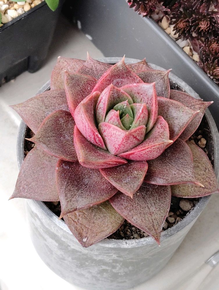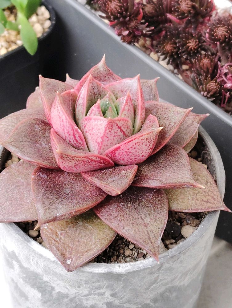 同時期に買ったダイソー産チワワエンシスはお別れになり、名無しちゃんは葉焼けし…でも、この大和錦だけ相性がいいんだか素人の私が調べながらの育て方でも元気で夏越しして今こんなに綺麗な姿見せてくれてます♪
