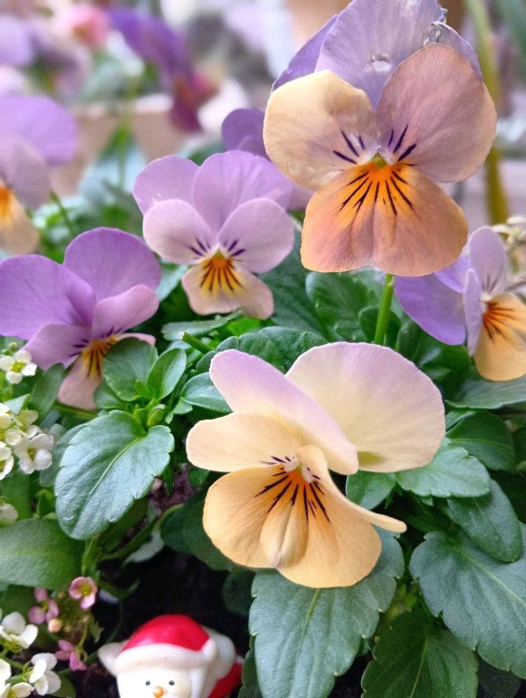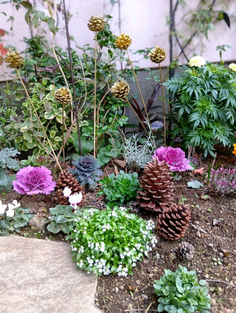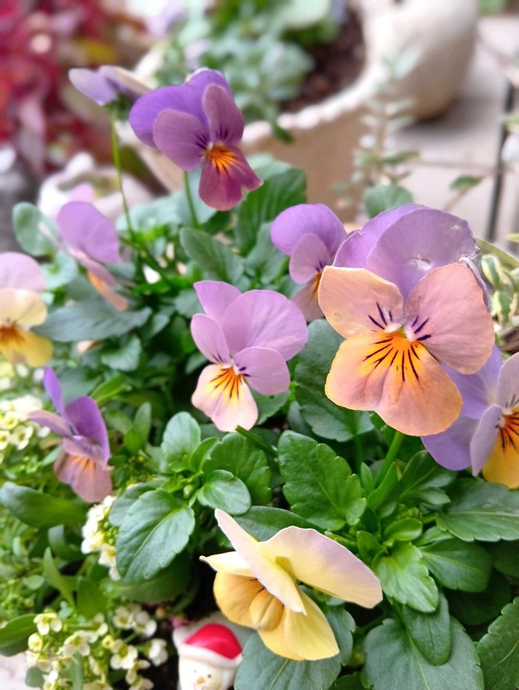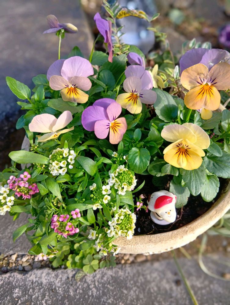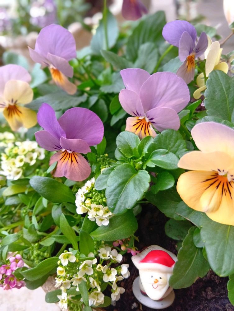 ⑤中央にこんもりドーム状にしっかりしてるのは、11月初旬入院前に我慢できずについお迎えしてしまった、100円ビオラ2つとアリッサム1つ