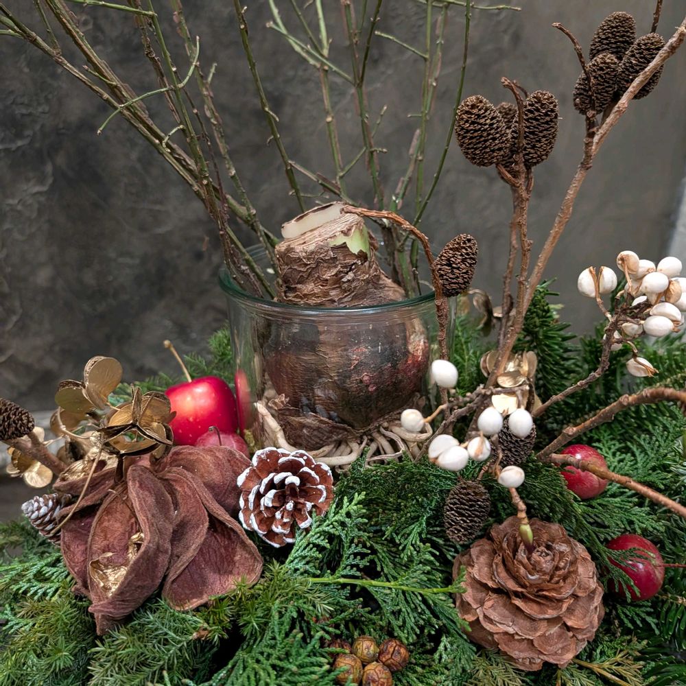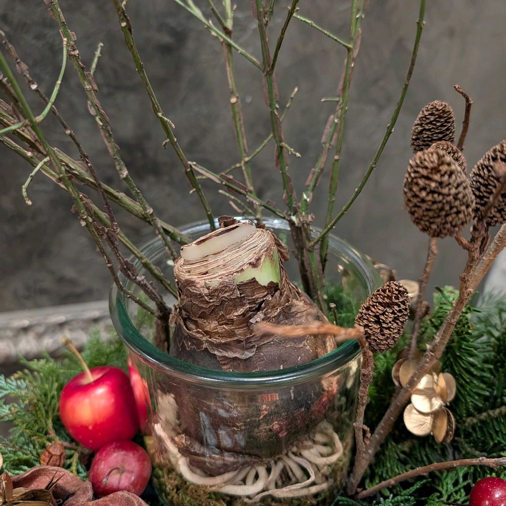 真ん中のガラスの器に入っている球根は水のいらないマジックアマリリス⚜️