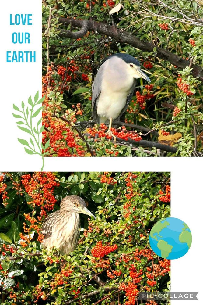 ここの大きなピラカンサは、なぜかゴイサギのお気に入りスポットみたい👀
