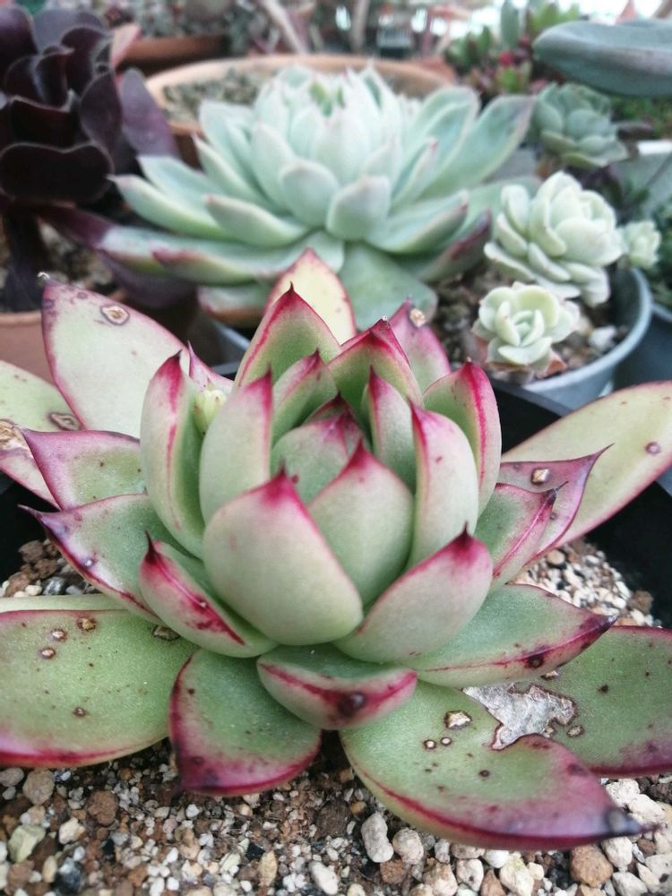 虫くってもツメ赤くて可愛わよ♥️我が家の多肉は部屋だから色ずき悪いよ緑緑してる💚💚