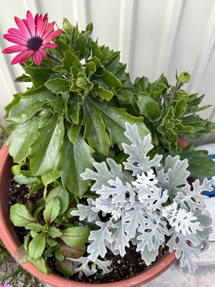 ①②『オステオスペルマムとシロタエギクとシレネピンクパンサー』の寄せ植え