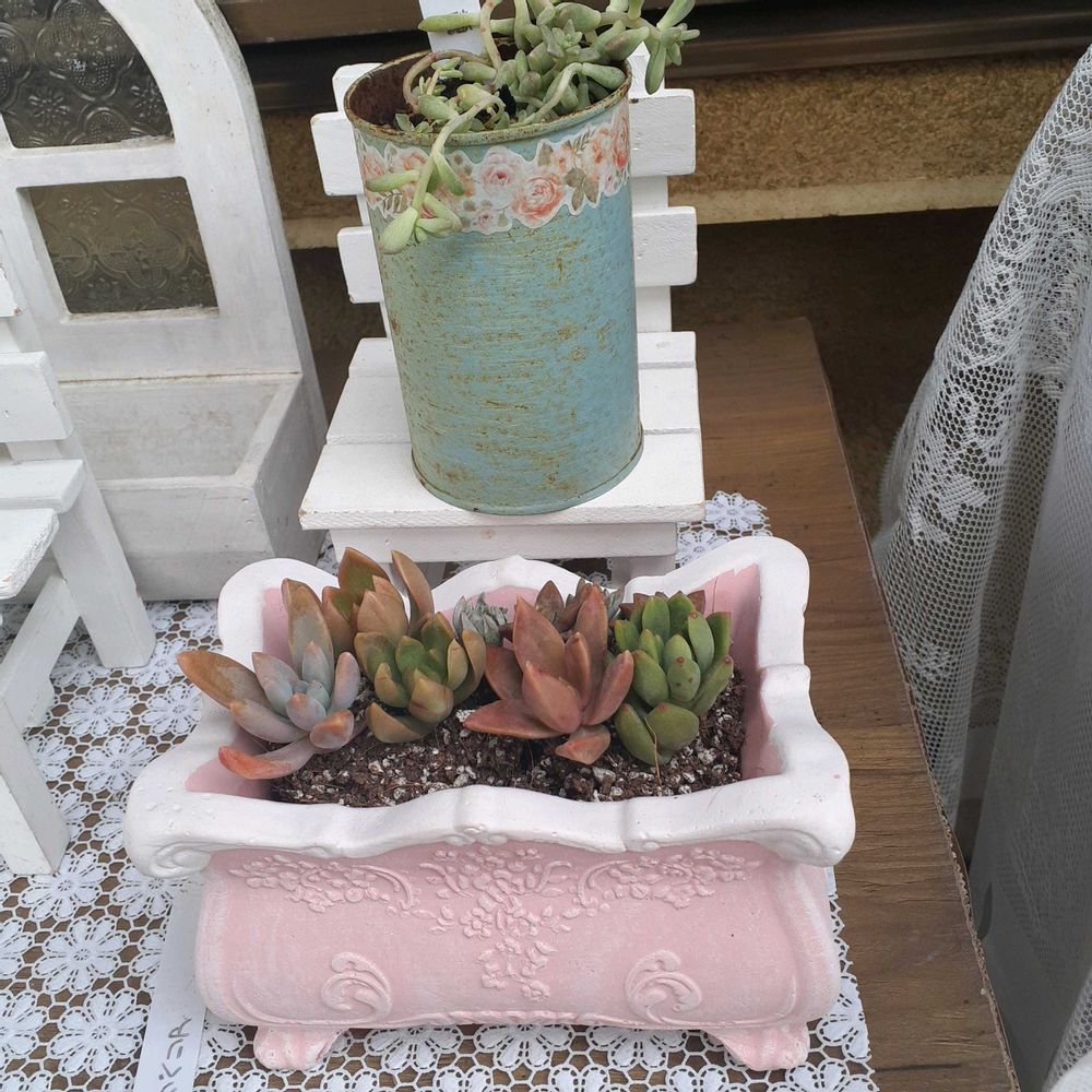 ⑤ブルーのリメカンはずっと前に作りました😃多肉勉強しようかな~🤔