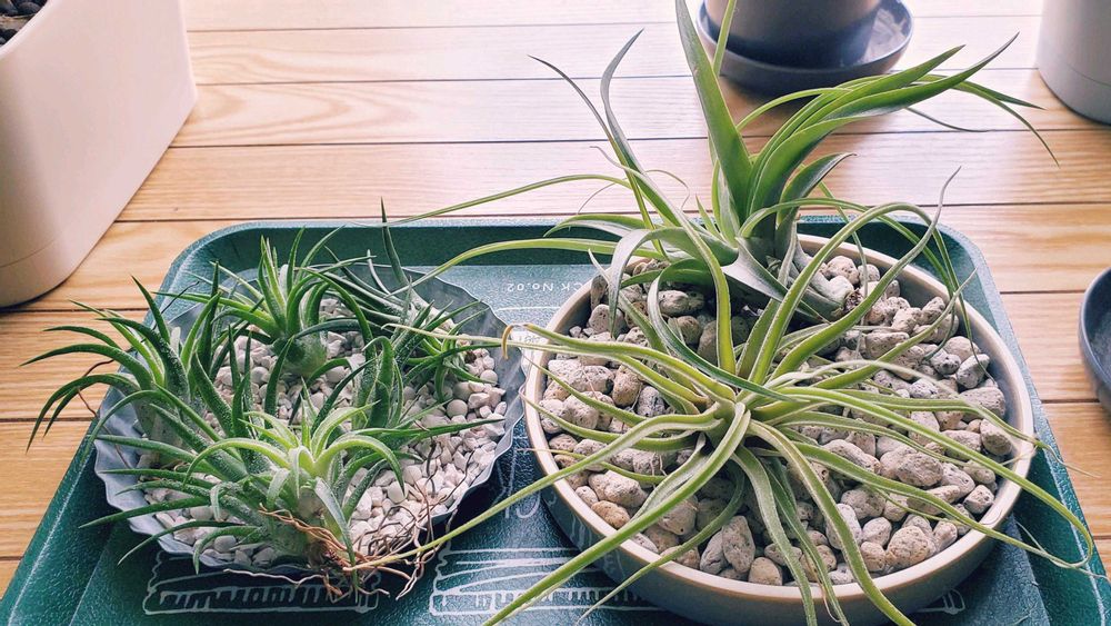 こちらは窓辺のエアプランツたち。冬場の水管理や温度調節をどうするか、考え中です。