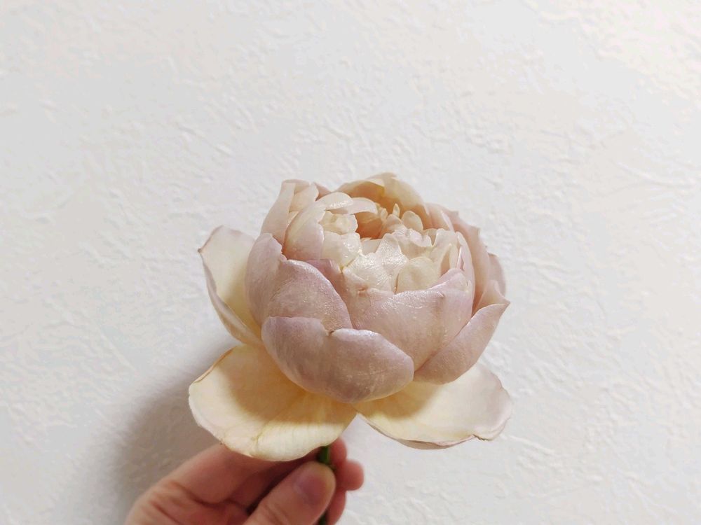 真珠のような光沢のある、ピンクがかったベージュの花びらの美しさは唯一無二だと思います。